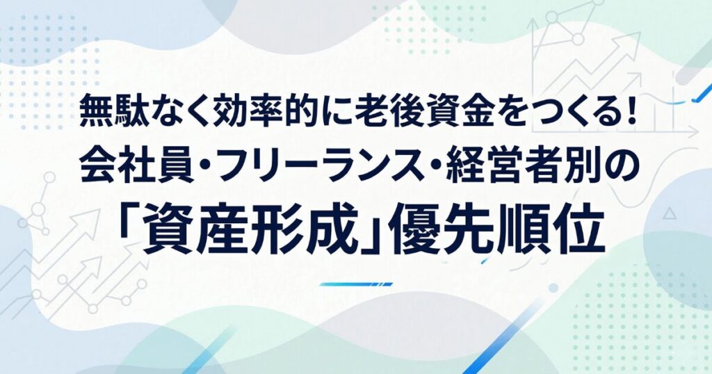 もし、ご自身の属性に合わない順番で資産形成を進めていると、本来得られるはずだった大きな税制メリットを取りこぼし、将来手元に残る金額が数百万円単位で変わってしまう可能性すらあります。本記事では、会社員、フリーランス(個人事業主)、経営者(役員)という3つの属性別に、無駄なく効率的に老後資金をつくるための「資産形成の優先順位」を徹底解説します。