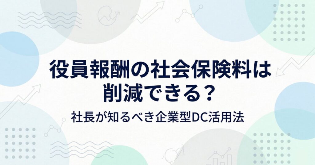 役員報酬の社会保険料は削減できる?社長が知るべき企業型DC活用法